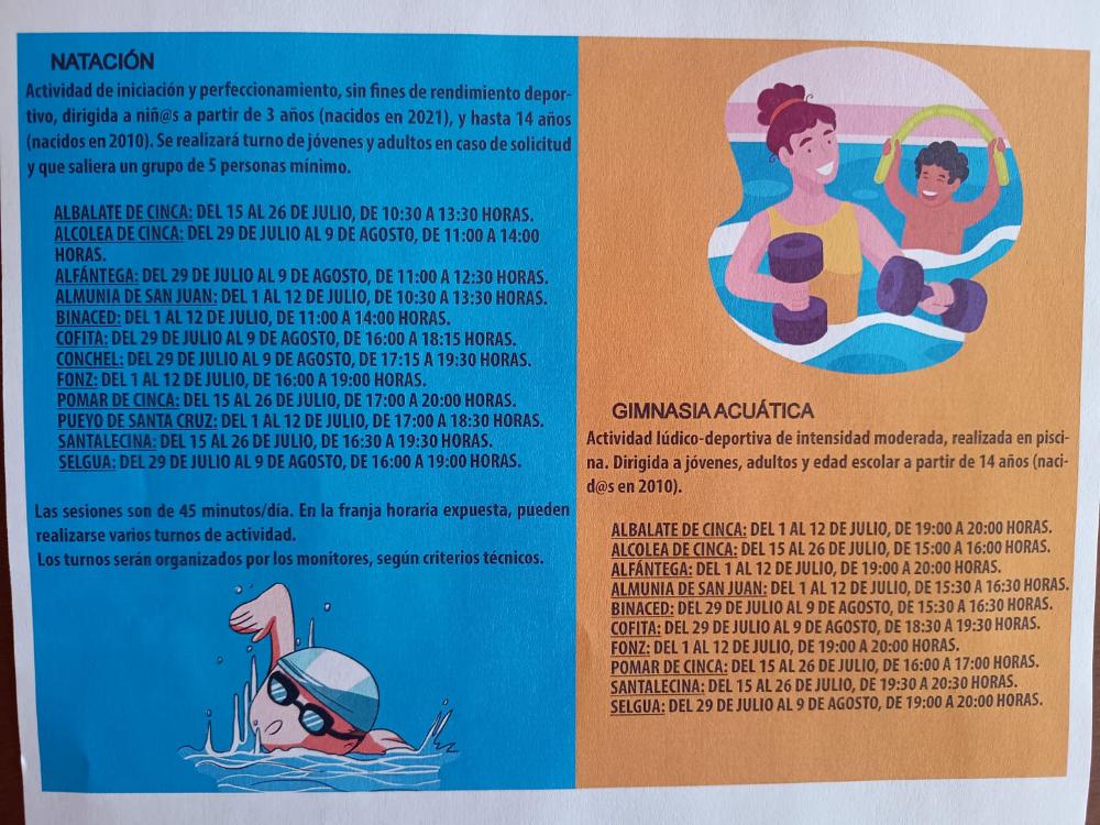 Natación 17 al 28 de junio - semana del 24 junio y del 15 al 26 de julio