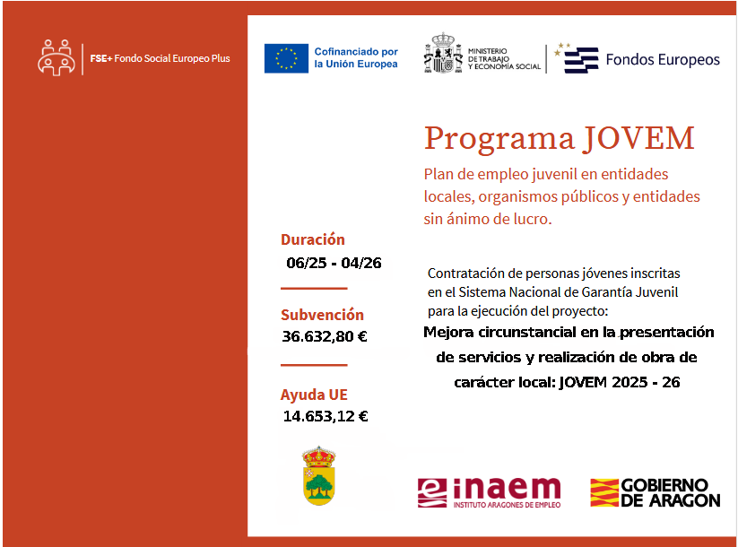 Mejora circunstancial en la presentación de servicios y realización de obra de carácter local: JOVEM 2025 - 26 FINANCIADO POR LA UNION EUROPEA Acción cofinanciada por el fondo social Europeo